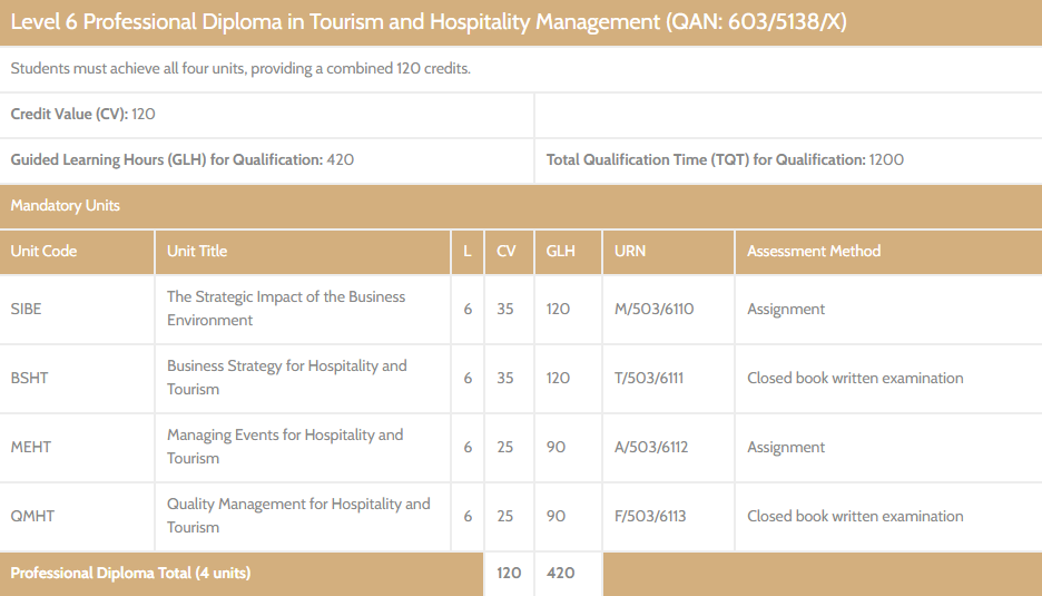 The Level 6 Professional Diploma in Hospitality and Tourism Management provides an industry-relevant postgraduate academic route for those who want to build towards a bachelor's degree qualification or improve their career progression.